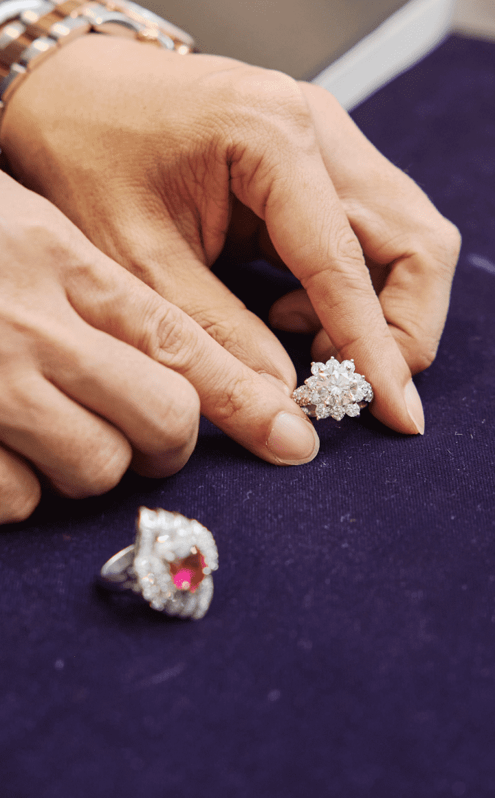 当社は宝石の問屋街といわれる御徒町にお店を構えており、専門の鑑定士が鑑定をさせていただいております。また当社はリジュエリー協議会、加盟店でもあり、年間20万点以上の買取実績がある早くて安心の買取システムとなっております。