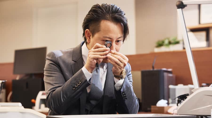 GIA.G.G.など国際的な宝石鑑定資格を持つ鑑定士が店舗に在籍。さらに専門機材を併用することで、人間の視点と科学的根拠の両面から正確な評価を行います。