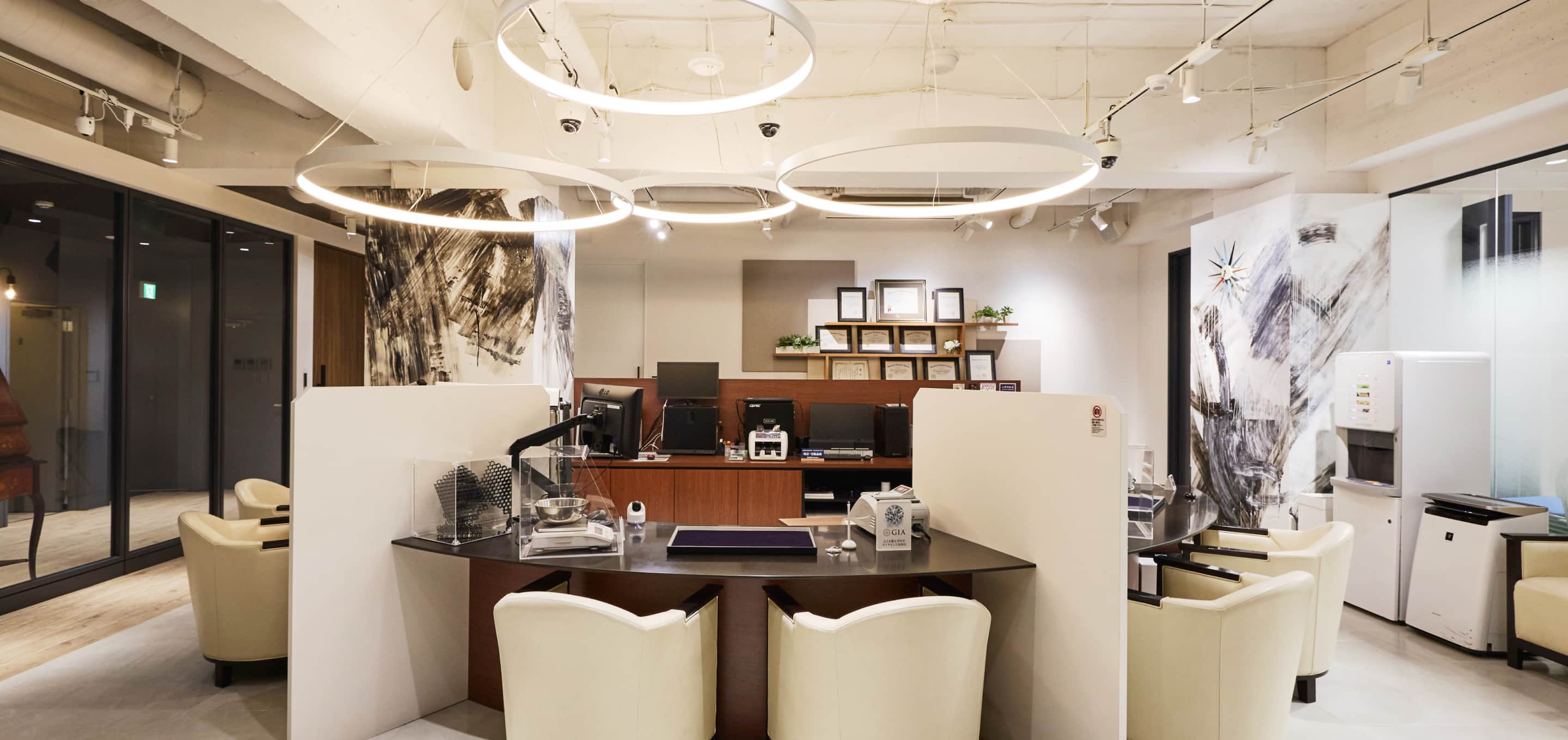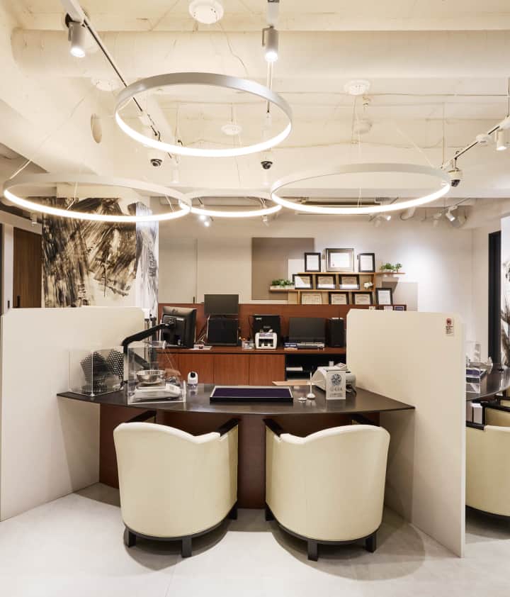 他のお客様と視線が交わりにくいレイアウトで、ご相談内容や査定結果が外に漏れにくい環境を整えています。周囲を気にせず話せるため、大切なお品物でも安心して査定をお任せいただけます。